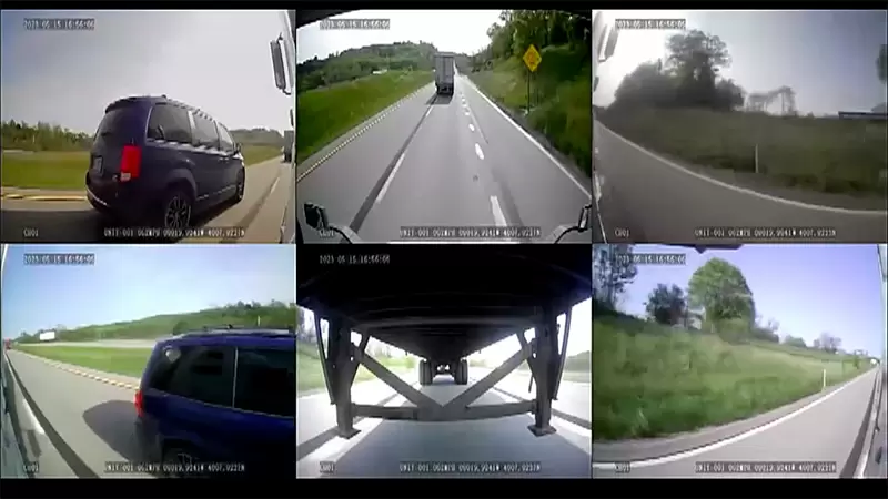 A recent collision on I-70 in Pennsylvania involving a semi-truck and a car has brought attention to the dangers of distracted driving. The incident was captured on the semi-truck's multiple cameras, which showed the car cutting in front of the truck in the left lane while trying to catch its exit. Despite warnings from the truck driver's horn, the car collided with the semi-truck, causing both vehicles to veer off the interstate and into a grassy area near Exit 11.