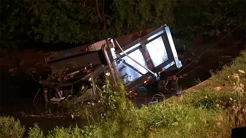 On Thursday night, a tragedy occurred in the state of New Jersey: A dump truck fell into a river, leading to hours of painstaking surgery to recover it. The heartbreaking incident occurred on August 10 at approximately 11:30 p.m. in Fairfield Township, New Jersey. According to preliminary reports from the New Jersey State Police, it was determined that a southbound Kenworth T880 truck driving southbound left the highway to the right. With force and speed, the truck slammed into a guardrail and eventually fell into the depths of the Cohansey River from the impact.