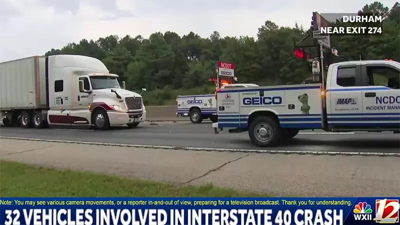 On Tuesday evening, a major pileup collision occurred in Durham, North Carolina. The accident took place during the early evening rush hour on August 15 on westbound I-40 near Exit 275 in Durham. Reports indicate that 32 vehicles were involved in a chain reaction crash on the interstate amid severe storms. According to eyewitness accounts, there were some cars that were completely underneath tractor trailers, which was surprising given the severity of the accident. Motorist Pat Shine told ABC 11 that she was surprised that more people weren't injured.